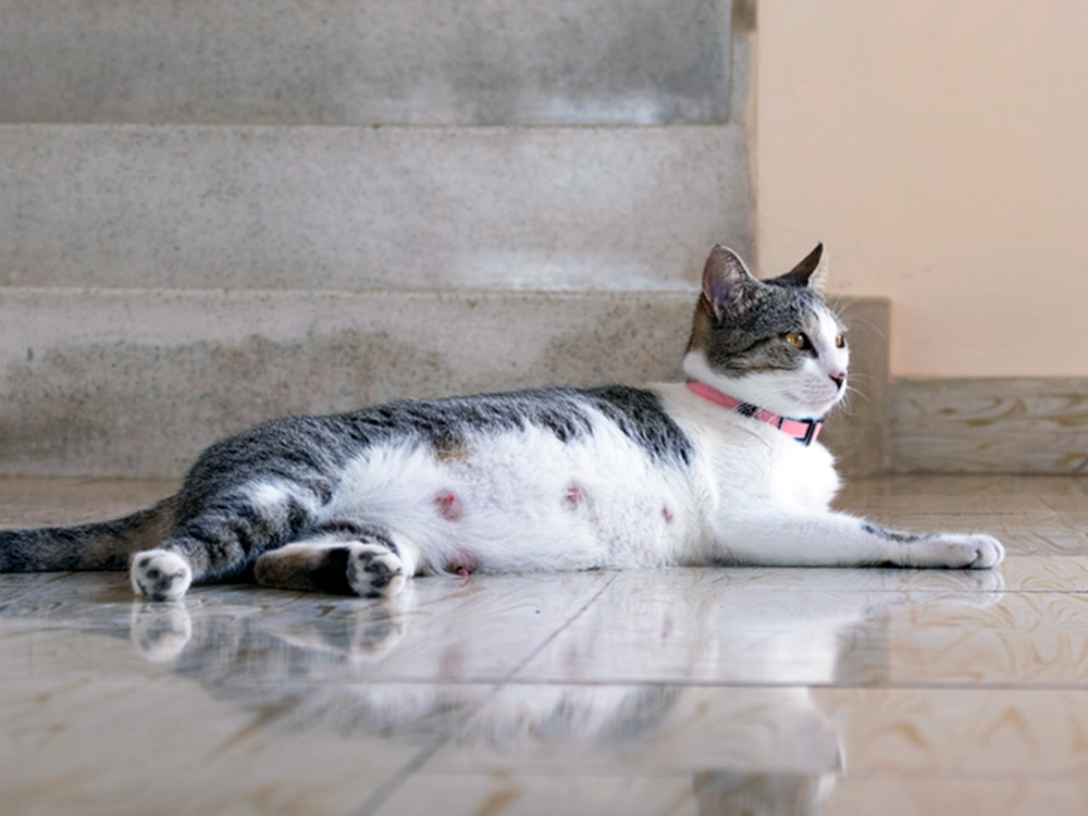 Nipple changes aren’t the only clue that your cat might be pregnant.